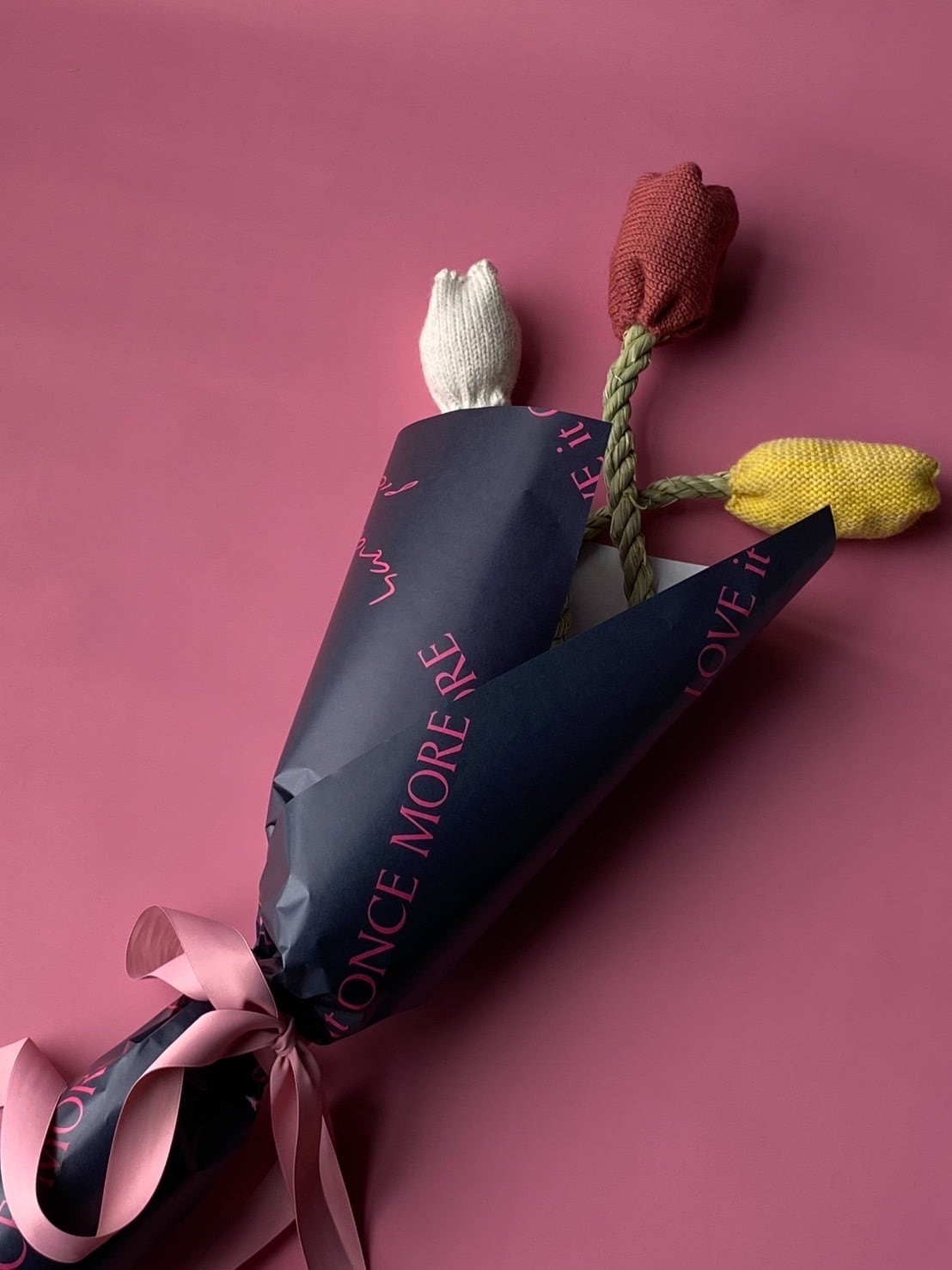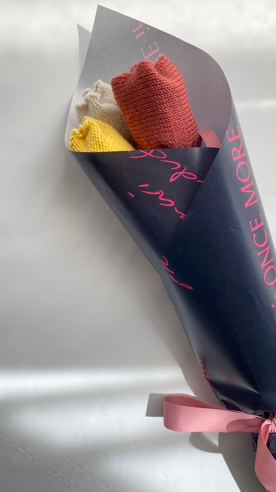 ニットと藁のお花、